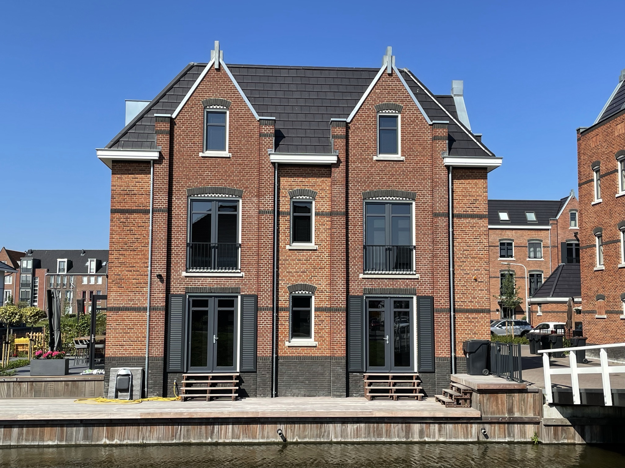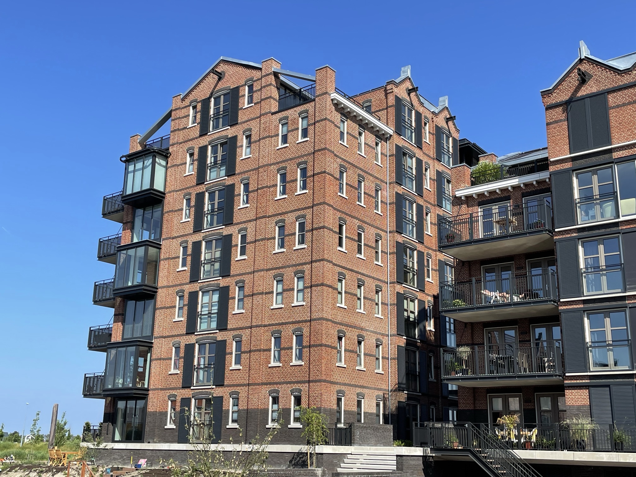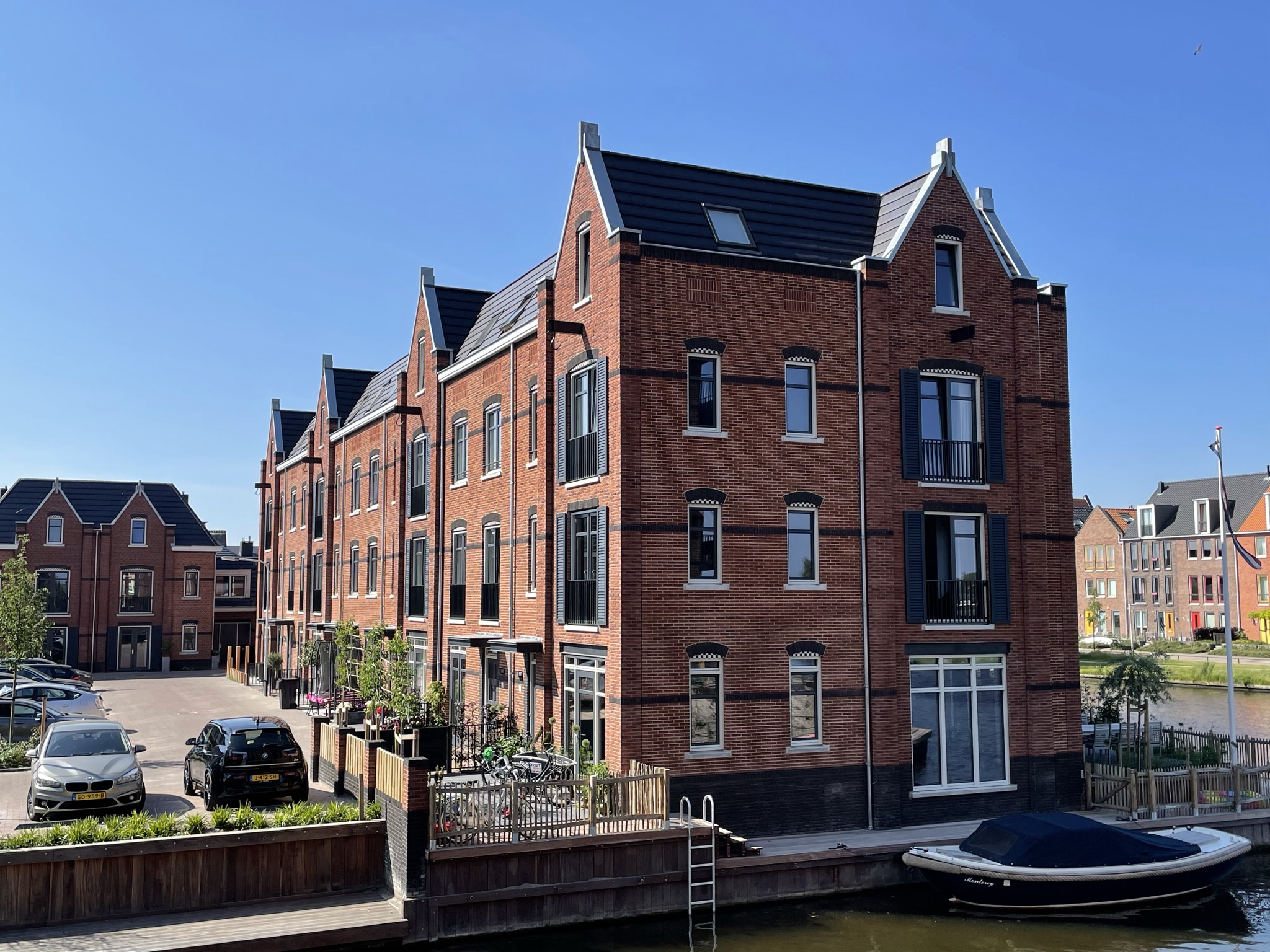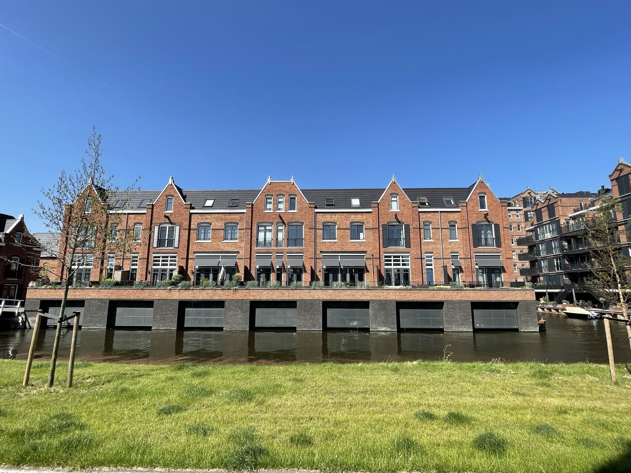 Dit project is gelegen aan de Oude Rijn in Oegstgeest. Het plan bestaat uit diverse appartementen, grachtenwoningen, twee-onder-een-kapwoningen en twee half-vrijstaande woningen. Een diversiteit aan woningen waarbij sommige grachtenwoningen zelfs een uniek inpandig botenhuis hebben onder de woonkamer. Dit project kent veel baksteenaccenten en detaillering in de gevel. Het uitgangspunt voor het ontwerp was de uitstraling van stoere pakhuizen aan het water. Dit soort bouwwerken zijn in de meeste gevallen opgetrokken in grote metselwerk gevels met kleine raamopeningen. Dit heb ik dan ook als concept aangehouden bij het ontwerp van dit project. Het enige verschil daarbij is dat er ook in gewoond moet worden. Hierdoor zijn sommige gevels wat meer opengewerkt voor daglicht en uiteraard het uitzicht over de Oude Rijn. Bij dit project zijn verschillende metselwerk verbanden toegepast wat de gevels nog mooier en bijzonderder maken. De echte kenners zien dat verschil! We hebben veel positieve reacties ontvangen uit de omgeving en van de bewoners zelf. En daar doen we het uiteindelijk voor!